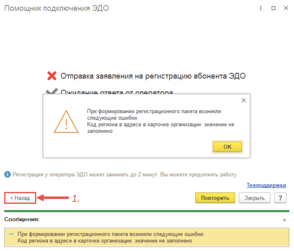 1С-ЭДО. Что делать при ошибке «Код региона – значение не заполнено»?