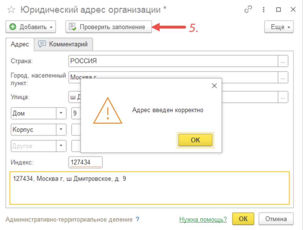 Шаг 4: Проверяем заполнение, проверка прошла успешно - адрес введен корректно!