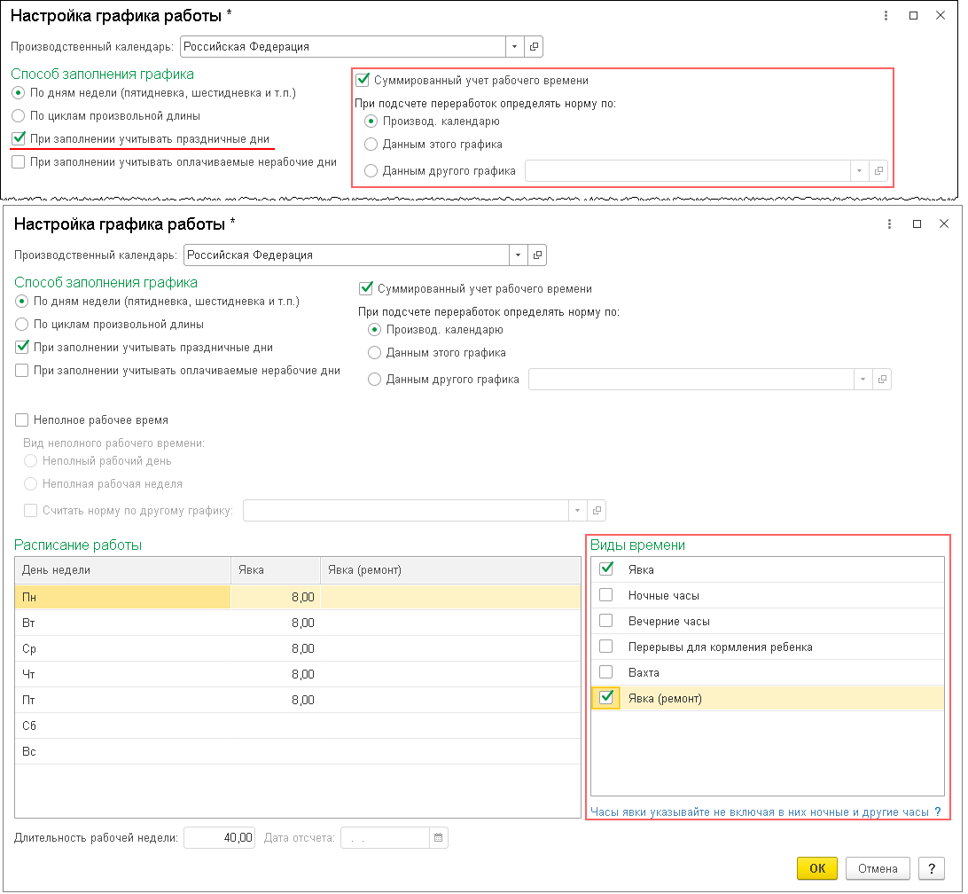 Настройка графиков работы в 1С:ЗУП