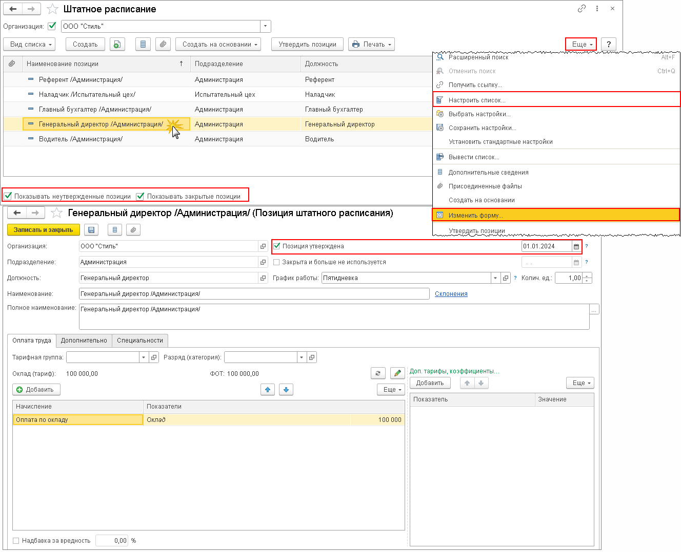 Настройка штатного расписания в программе 1С:ЗУП