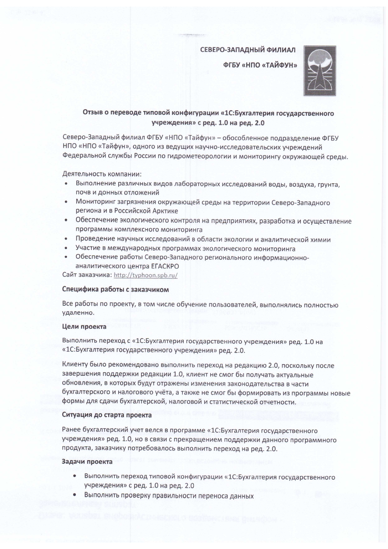 Северо-Западный филиал ФГБУ «НПО «Тайфун»- обособленное подразделение ФГБУ